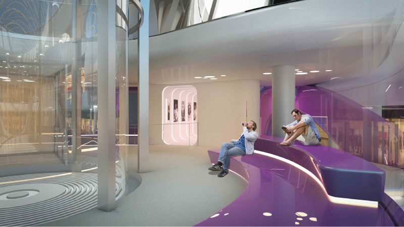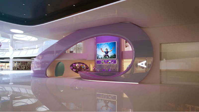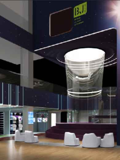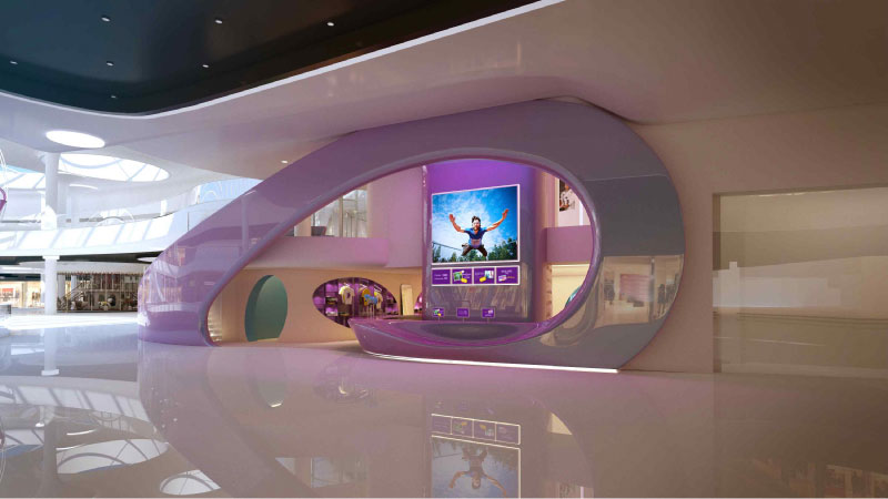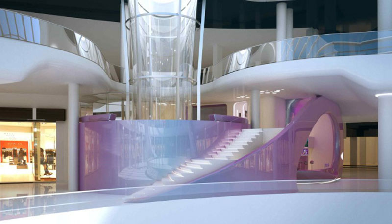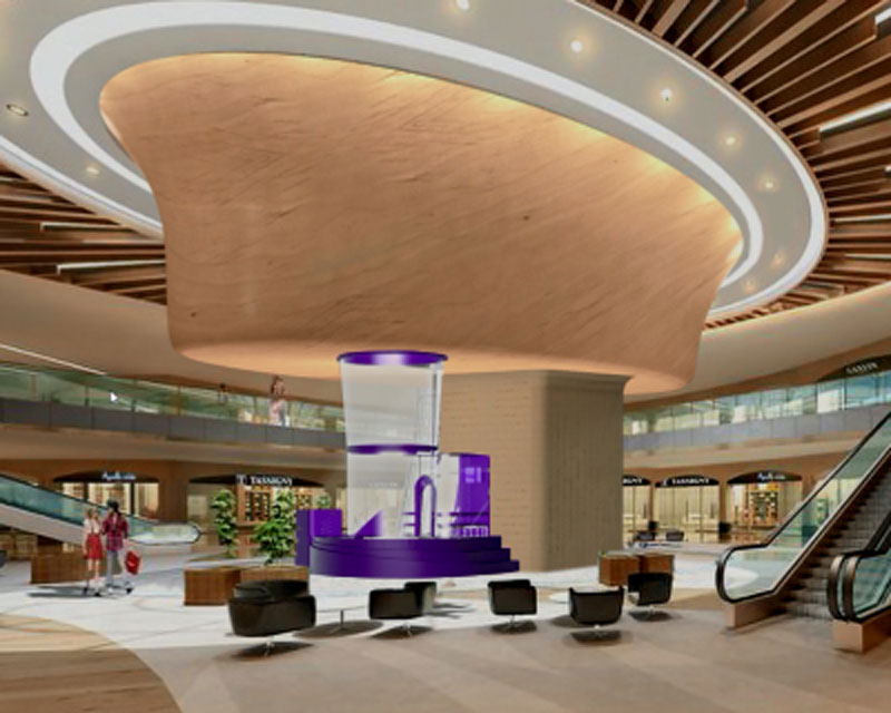 The EI model is perfect for integration into shopping malls or similar buildings with a ceiling height of at least 12 meters. It is the first vertical glass tunnel that can be fully integrated inside a shopping mall. It is designed and manufactured individually for new shopping center projects or installed in already completed buildings. Thanks to this innovative solution, it is possible to introduce a large object into an existing area after the work on the shopping center project has started and all the main building construction is already in place.